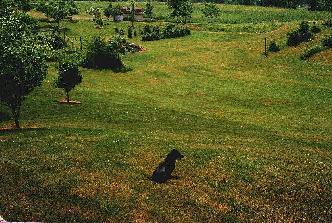 My late dachshund Elmy guarding the east end of Phantom Lake. My nearly 2 acre property sits atop a deep gravel glacial deposit that about ten thousand years ago was the floor of a glacial lake. Directly behind our house there is a 30 foot deep depression that I call Phantom Lake. On calm summer nights one can walk down into this "lake" and feel the temperature drop 10 to 15 degrees (F) as you descend. One especially cold night I checked the temperature between the top and bottom and found the top was -10ºF and at the bottom it was -32ºF. Some frost pocket, don't you agree? About 150 yards west of us the Conewango Creek flows south to join the Allegheny River seven miles away, eventually becoming the Ohio and the Mississippi Rivers before finally entering the Gulf of Mexico. Before the last glacier, the Conewango flowed north into what is now Lake Erie and eventually became the St. Lawrence River before emptying into the North Atlantic Ocean. mail: dan@phantomlake.net ©2000,2001 by Dan Sorensen Last edited on 4/24/01 |